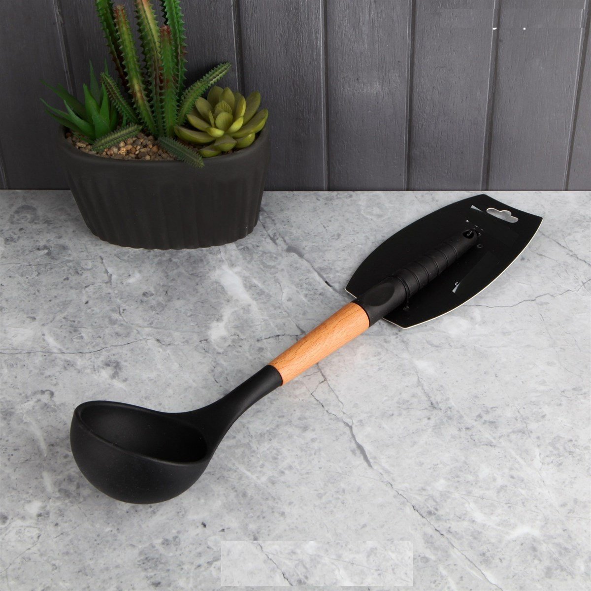Silikon Bambu Saplı Perotti Siyah Kepçe
