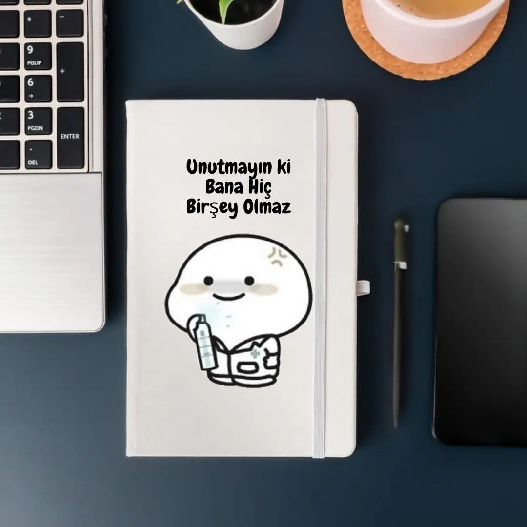 Pozitif enerjiyi, mizahı ve sevimliliği bir araya getiren bu özel tasarım defter, “Unutmayın ki bana hiçbir şey olmaz” yazısıyla günlük hayatınıza eğlence katıyor. Üzerindeki sevimli karakter baskısı sayesinde hem esprili hem de motivasyon dolu bir görünüm sunarak kullanıcıya keyifli bir deneyim yaşatıyor.