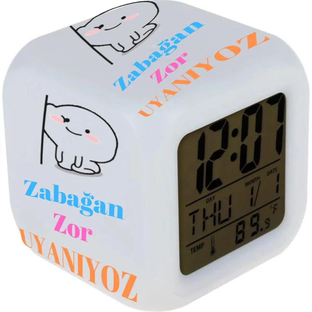 Gece lambası ve masa saatini aynı yerde buluşturan MultiColor Işıklı Küp Saat, yatak odalarının vazgeçilmezi olacak. Saat özelliğinin yanında alarm, termometre ve takvim fonksiyonları da bulunan küp saat, dilerseniz rengarenk bir saate dönüşebilir, dilerseniz de tek renk ya da renksiz olarak kullanılabilir. Sabah erken kalkmakta zorlanan sevdikleriniz için ideal gece lambası ve masa saati, hayatınızı renklendirmek için tasarlandı.