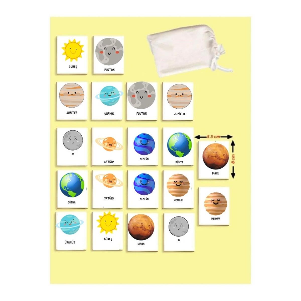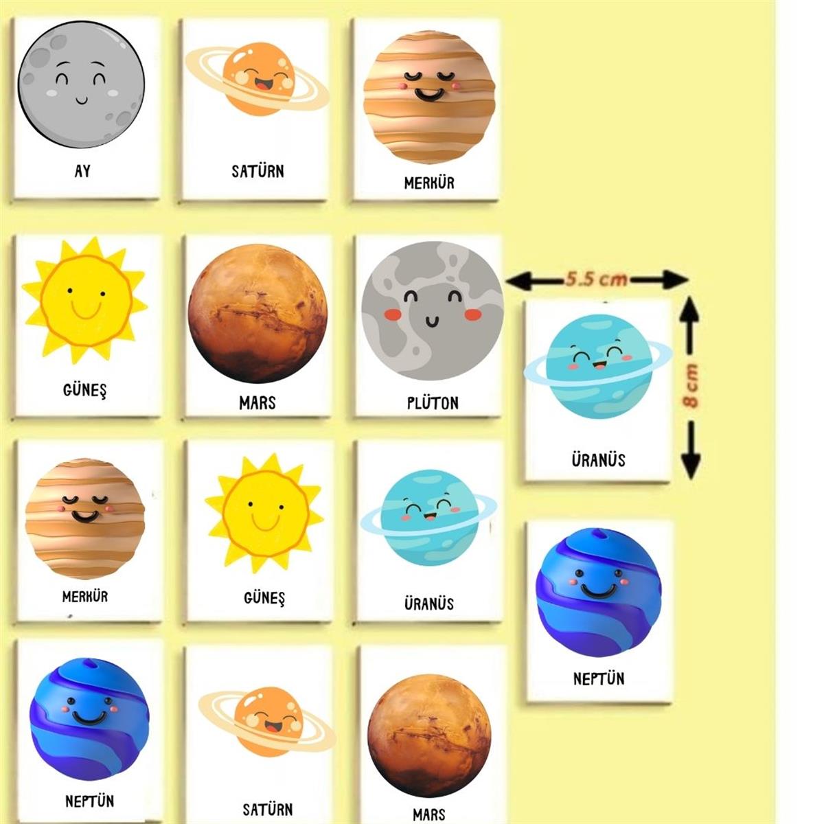 Zeka Kartları Eşleştirme Oyunu Gezegenler Ahşap Eğitici Puzzle Oyun