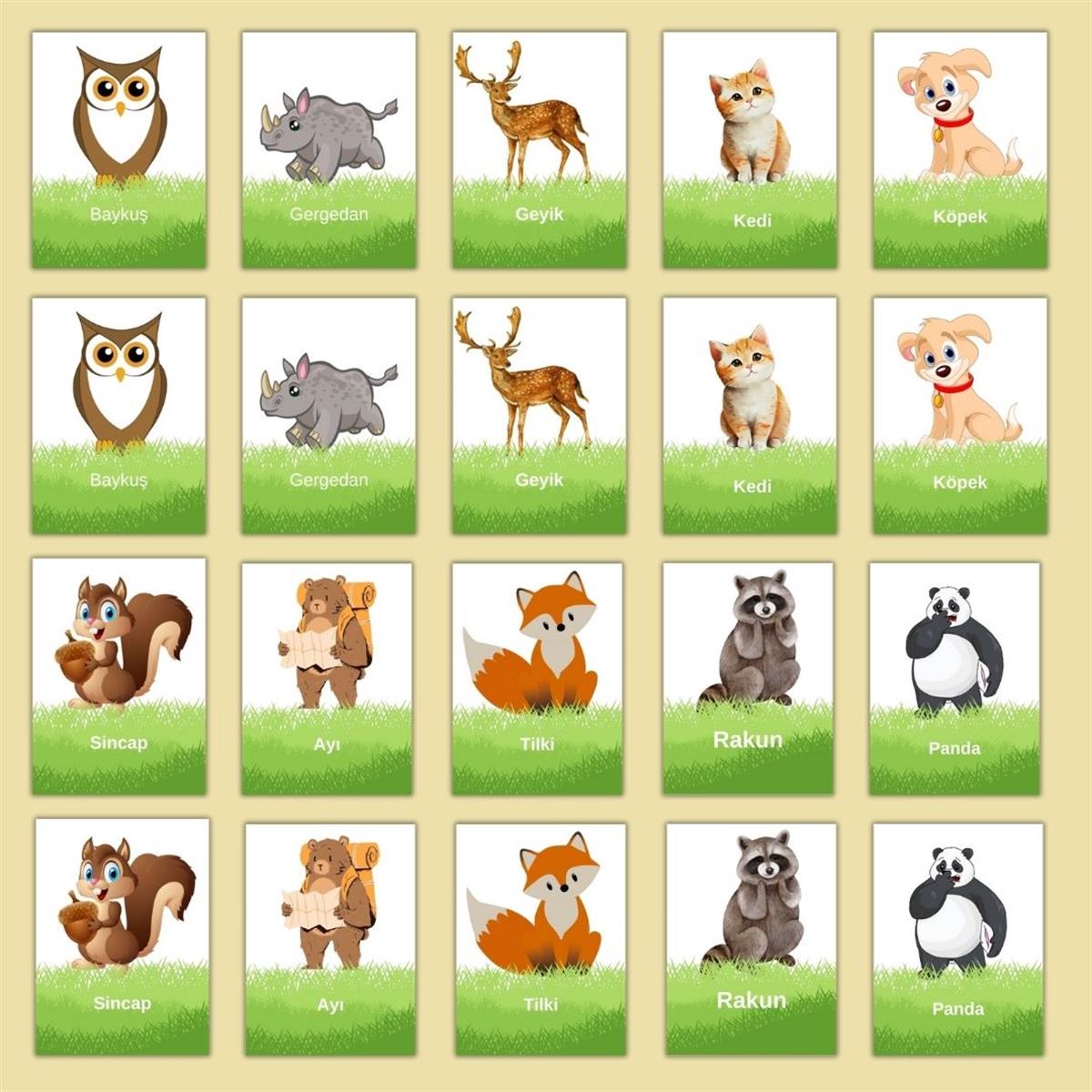 Zeka Kartları Orman Hayvanları Eşleştirme Oyunu Ahşap Eğitici Puzzle Oyuncak